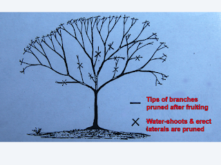 - A year later, another 6 strong, lateral and wide-angled branches are selected as the main or primary limbs. At this stage, about 10 to 12 primary limbs should be developed and the highest branch should be about 2 meters above ground level.