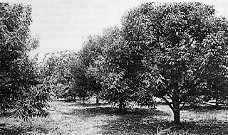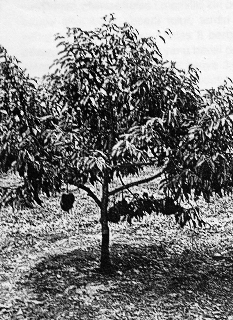 - The main trunk and the primary limbs can be topped and trimmed regularly to obtain a desirable shape of the canopy so that the cultural practices described above can be employed in an efficient manner.