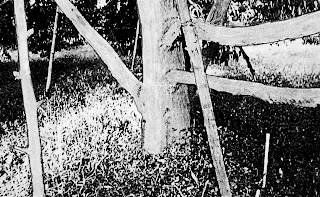 Limbs can be spread by using bamboo or wooden sticks cut to proper lengths to spread limbs to wide angles with the trunk. The angles should be over 45 degrees and less than 90 degrees. Be careful not to split the branches at the point of attachment as you put the sticks in place.